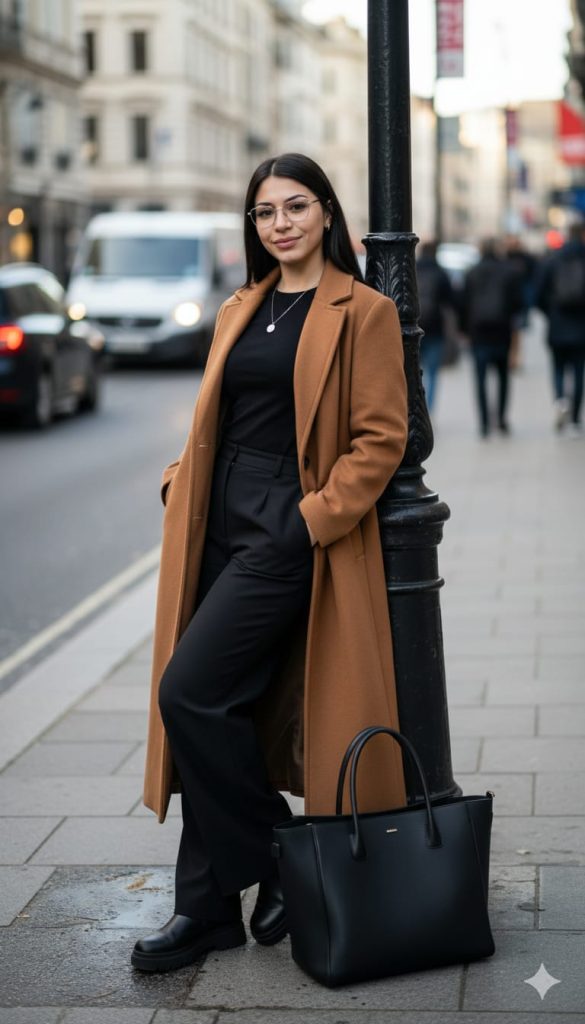The lighting creates dramatic and sophisticated shadows, with a soft circular spotlight in the background, evoking a high-fashion editorial aesthetic. Ultra HD, sharp details, cinematic fashion photography atmosphere. Aspect ratio: 9:16 (vertical).